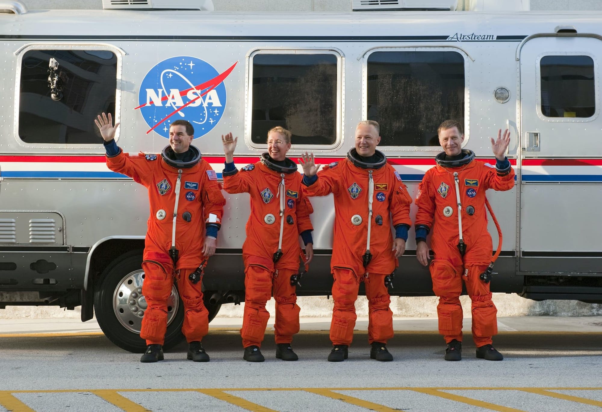 Since 1984, NASA used a modified Airstream motor home called the “Astrovan” to ferry astronauts between the Crew Quarters and the space shuttle launchpad. In fact, Doug Hurley was part of the very last space shuttle launch in 2011 (pictured second from right) and was one of the last passengers in the Astrovan.